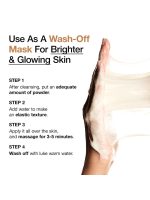 1. استفاده به عنوان ماسک شستشو : پودر را با 1 قاشق غذاخوری آب مخلوط کنید. سپس محصول را به طور یکنواخت روی پوست بمالید و به مدت 3 تا 5 دقیقه ماساژ دهید. در نهایت پوست را با آب ولرم شستشو دهید.