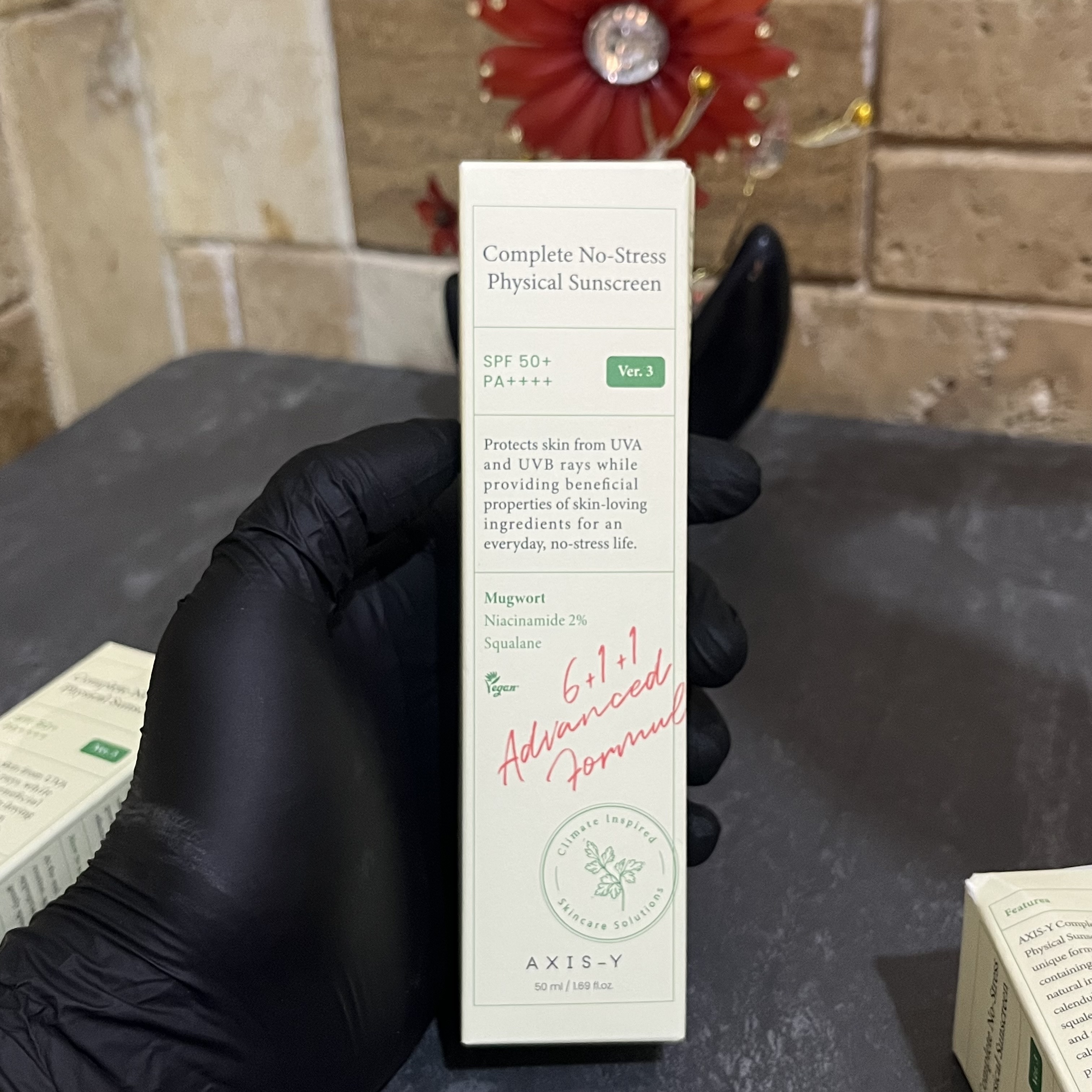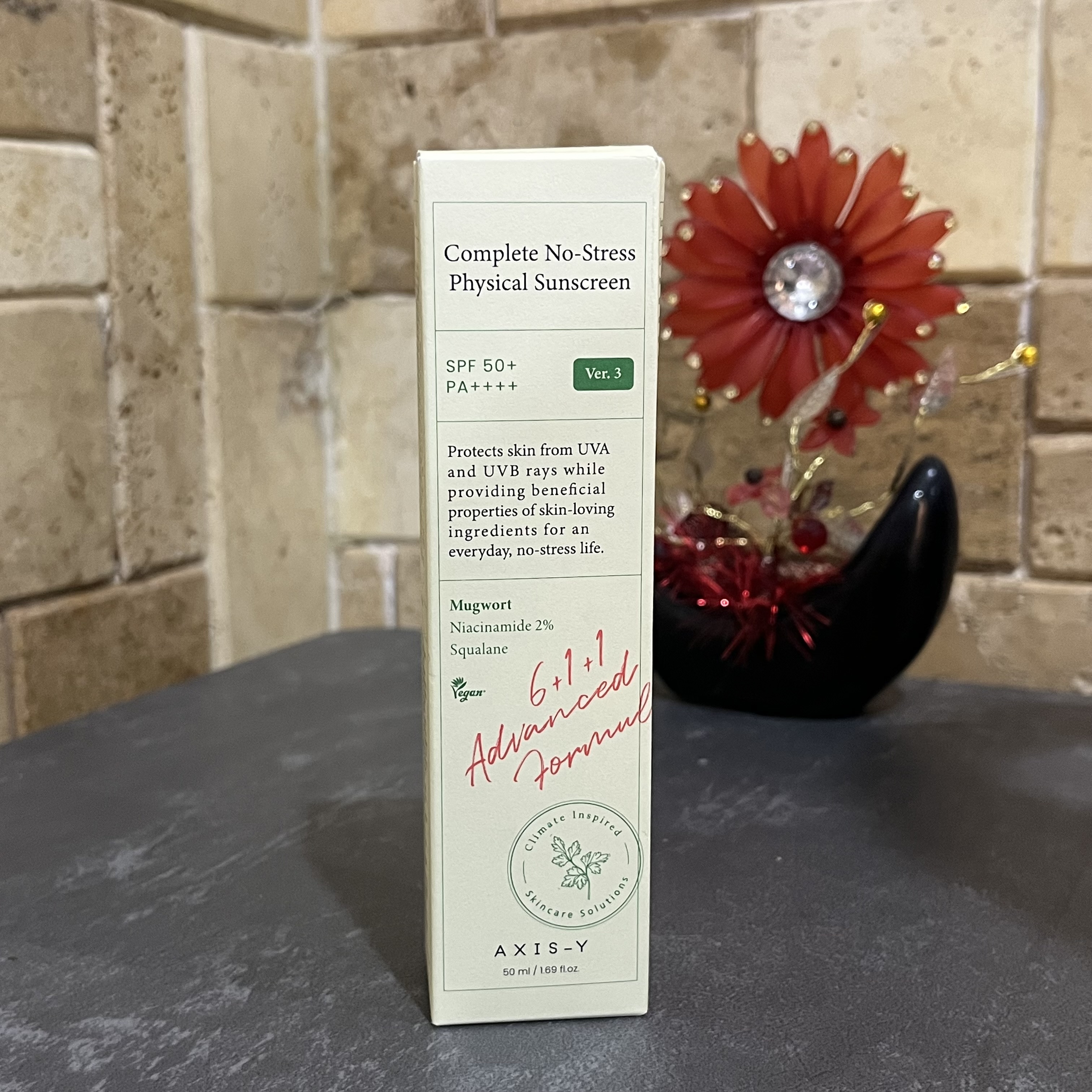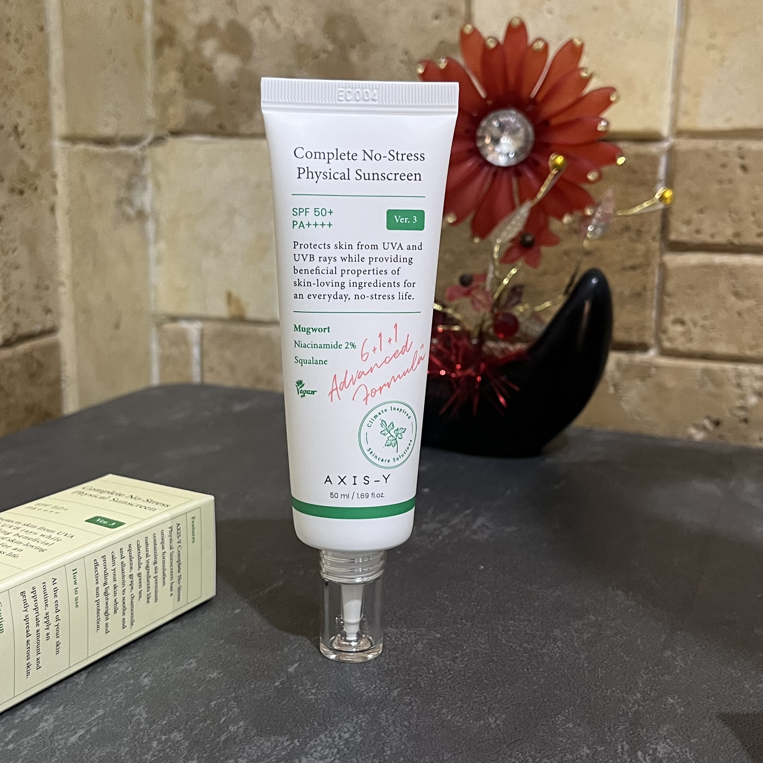 ضدآفتاب فیزیکی Axis-Y Complete No-Stress Physical Sunscreen یک ضدآفتاب معدنی (فیزیکی) با SPF 50+ و PA++++ است. این محصول بهویژه برای پوستهای چرب و مستعد آکنه فرموله شده است، اما برای انواع پوست مناسب است.