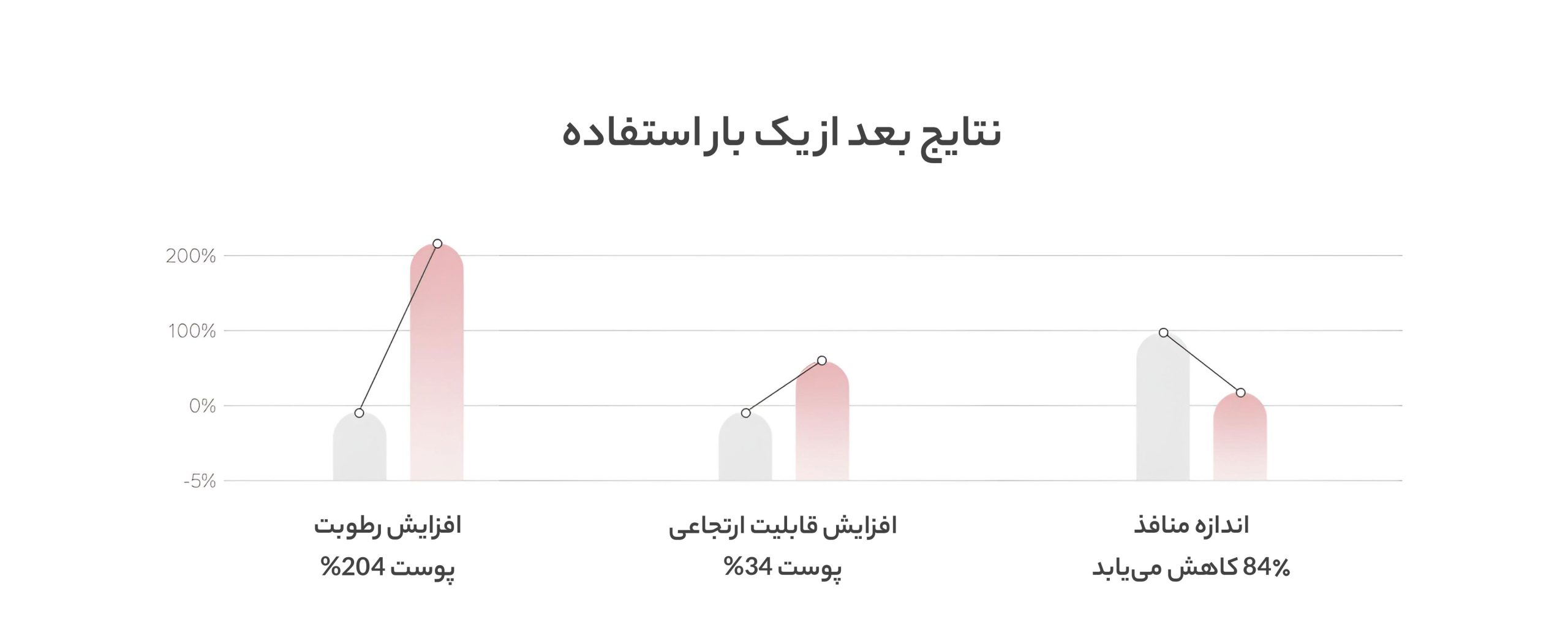 رفع 90.48% از دهیدراتگی و کم آبی پوست و 90.48% یک پوست محکم و پر را ایجاد میکند.