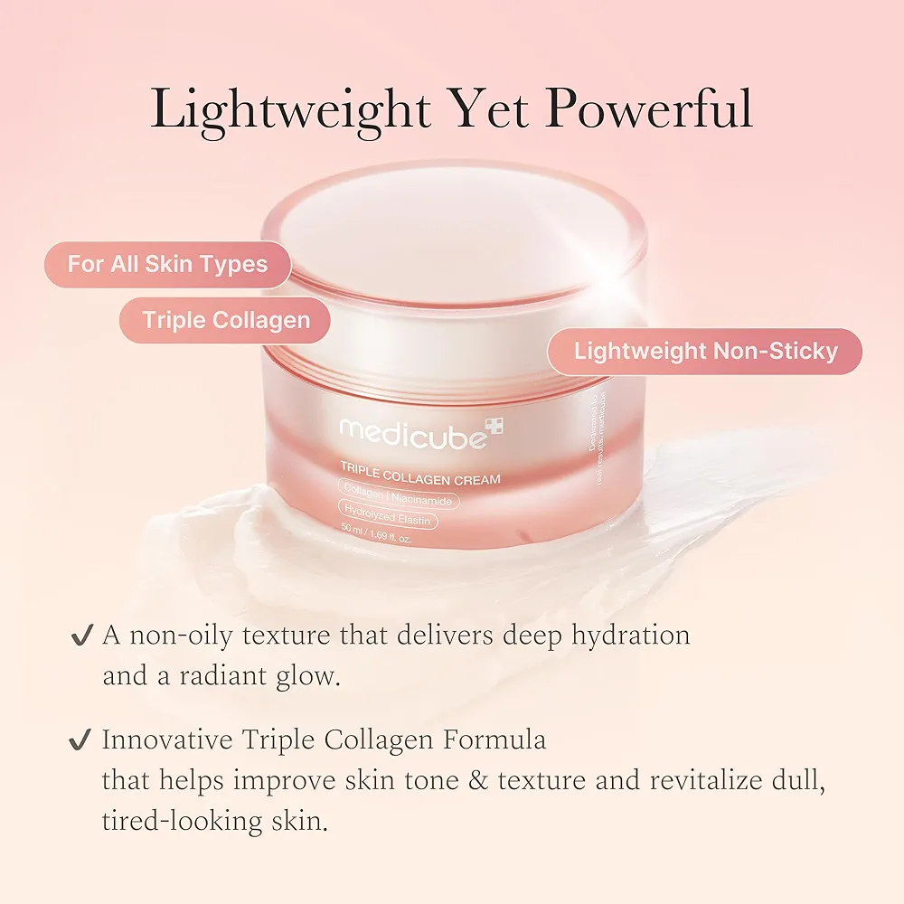 کرم جوانساز کلاژن تریپل مدی کیوب (Medicube Triple Collagen 4.0 Cream) یک محصول نوآورانه از برند کرهای مدی کیوب است که با ترکیب سه نوع کلاژن، پوست را عمیقاً آبرسانی کرده و جوانسازی میکند. این کرم با فرمولاسیون پیشرفته، الاستیسیته پوست را افزایش داده و خطوط ریز و چروکها را کاهش میدهد، که آن را به انتخابی ایدهآل برای افرادی که به دنبال بهترین کرم جوانساز صورت هستند، تبدیل کرده است. در افرا مارکت، این کرم با اصالت تضمینشده و ارسال سریع از قشم در دسترس شماست.