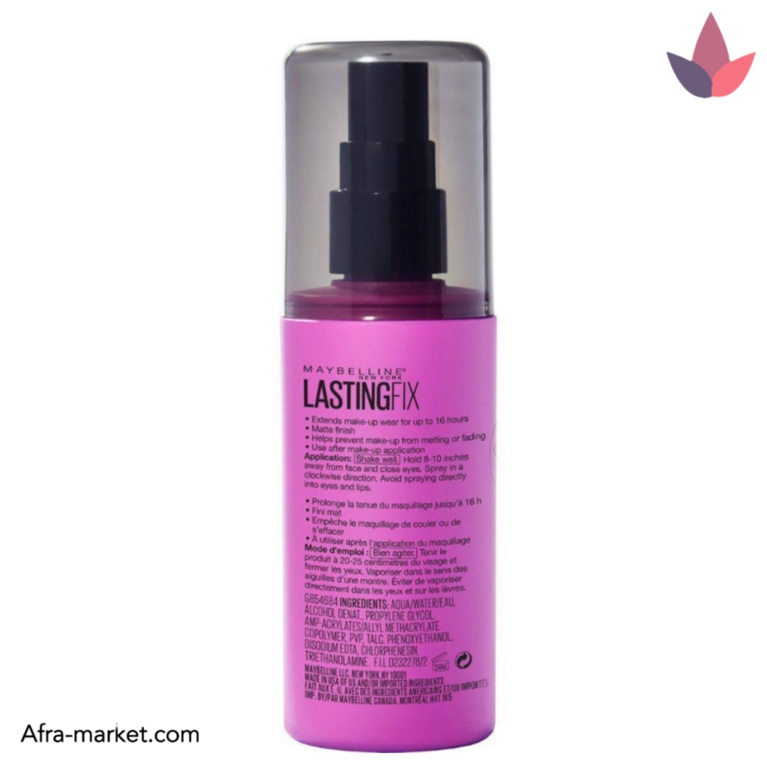 💰 برای اطلاع از قیمت و خرید اسپری فیکس میبلین مدل Lasting Fix حجم 100 میل، به فروشگاه آنلاین افرا مارکت مراجعه کنید.