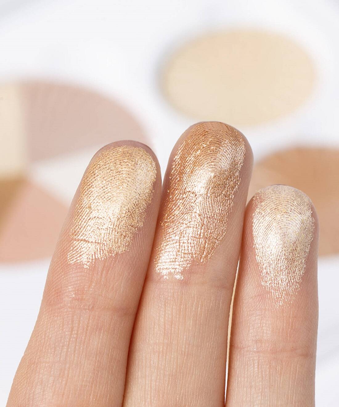 با استفاده از براش و نوک انگشتان مقداری از هایلایتر را روی بینی و نقاطی از صورت که نیاز به درخشندگی و برجستگی دارد بزنید