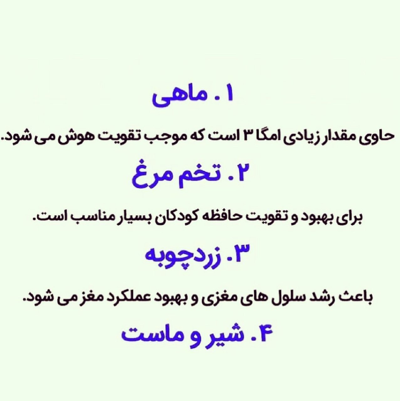 ۱. ماهی: حاوی مقدار زیادی امگا ۳ است که موجب تقویت هوش می.شود