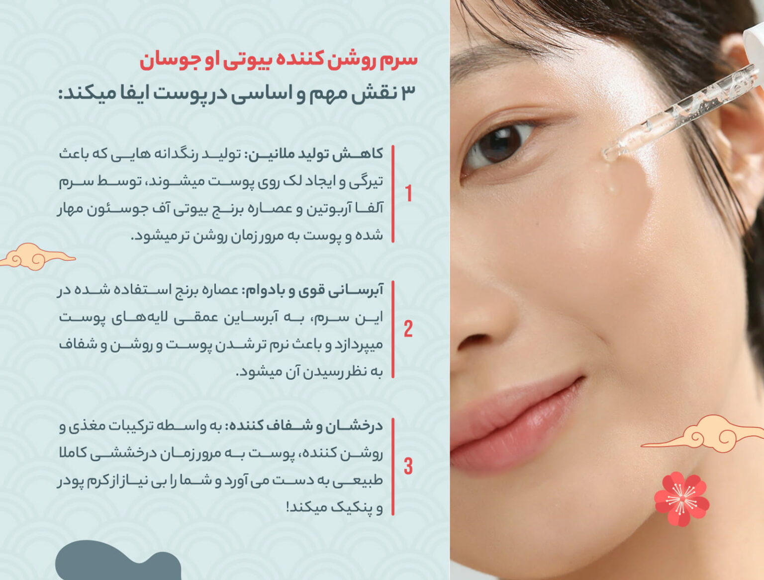 سرم روشن کننده بیوتی او جوسان ۳ نقش مهم و اساسی در پوست ایفا میکند: