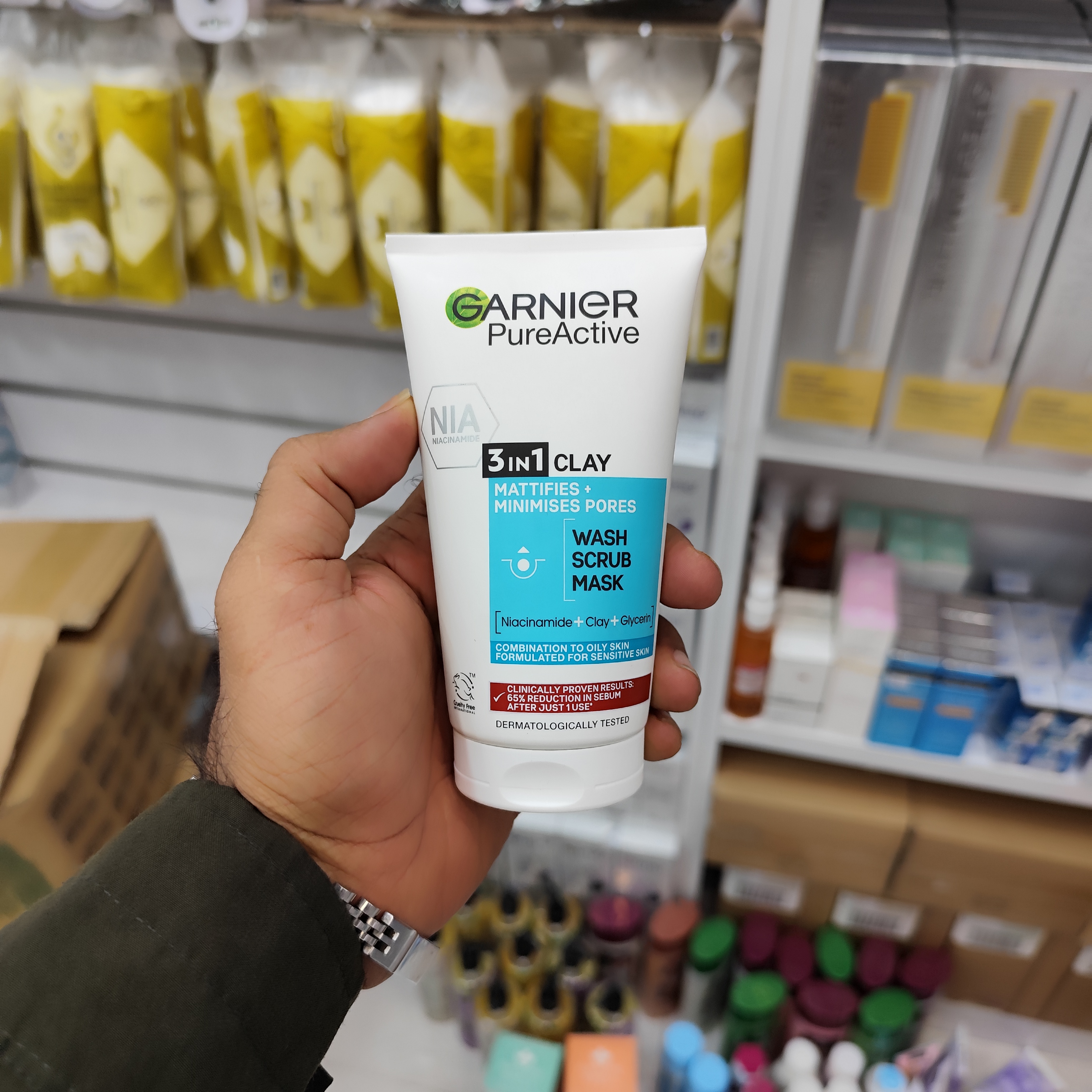 Garnier Skin Active Pure Active 3 in 1 Clay Wash Scrub Mask 150ml