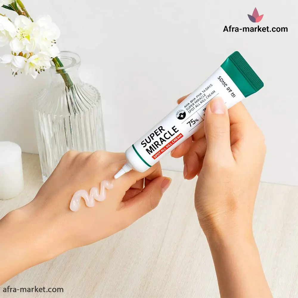 کرم ضد جوش فوری سوپر میراکل سام بای می یک کرم مراقبتی قوی برای از بین بردن جوشها و لکههای کوچک است. این محصول با ترکیبات مؤثری مانند AHA، BHA و PHA فرموله شده است که به طور مؤثر سلولهای مرده پوست و آلودگیها را از بین میبرند. همچنین، این کرم حاوی D- پانتنول است که به تنظیم تعادل چربی و آب پوست کمک کرده و رطوبت پوست را تأمین میکند.