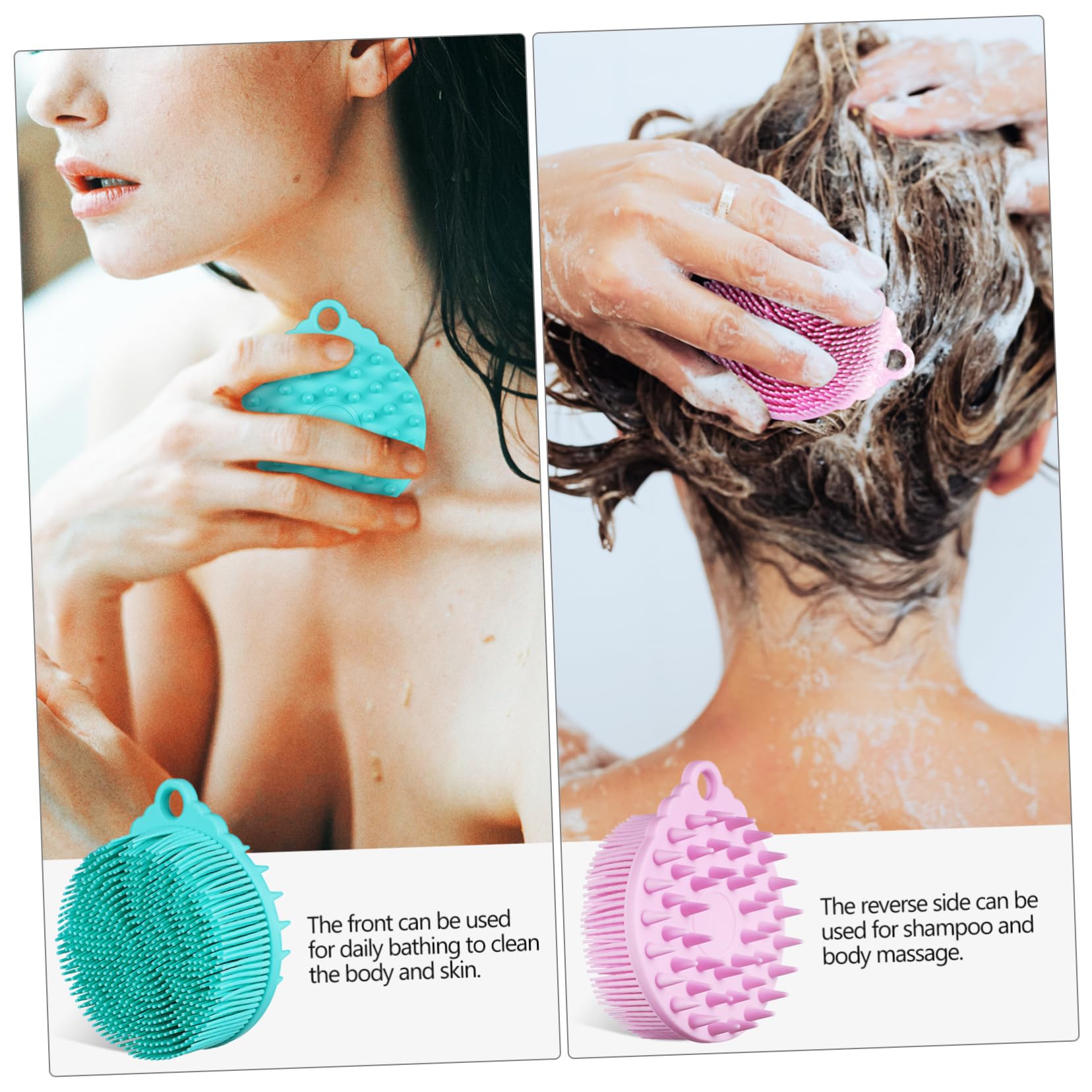 ماساژور برای شستن سر، مو، بدن و گردن به آرامی پوست را ماساژ می دهد و گردش خون را بهبود می بخشد و در نتیجه پوست را تغذیه و التیام می بخشد و همچنین باعث رشد و بازسازی مو می شود. دندانه های سیلیکونی برس دوش موها را از جای خود خارج کرده و به آرامی پوست را می خراشند و در نتیجه ریزش مو را کاهش می دهند.