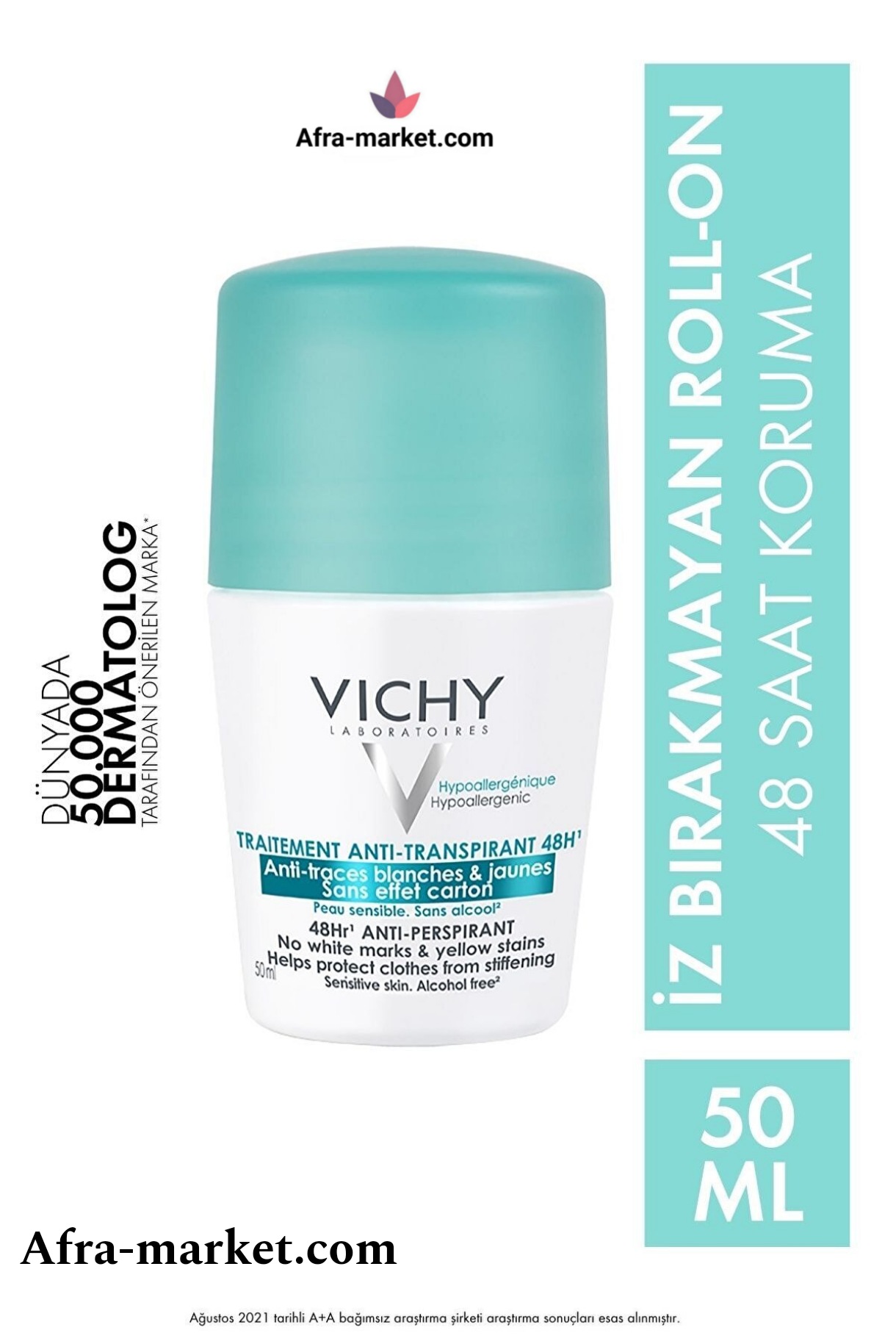 رول ضد تعریق قوی 48 ساعته ویشی (Vichy Anti Perspirant Roll On 48H)، حاوی ترکیبات موثر است که تعریق بدن را تنظیم می کند و اثر آن تا 48 ساعت باقی می ماند. بافت این دئودورانت همچون لایه ای پودر بر روی پوست قرار می گیرد و بدون ایجاد لکه های سفید بر روی پوست یا لباس به پوست احساس پاکیزگی و شادابی می بخشد. این دئودورانت به دلیل داشتن ویتامین C پوست زیر بغل را روشن می کند. همچنین بعد از مدتی استفاده مداوم متوجه کاهش رشد موهای زیر بغلتان می شوید. اگر بعد از اپیلاسیون و یا لیزر پوستتان حساس می شود و استفاده از دئودورانت ها باعث سوزش زیر بغلتان می شود این دئودورانت برای شما بهترین انتخاب است چرا که بدون سوزاندن و تحریک پوست، تا 48 ساعت از بوی نامطبوع بدنتان جلوگیری می کند.