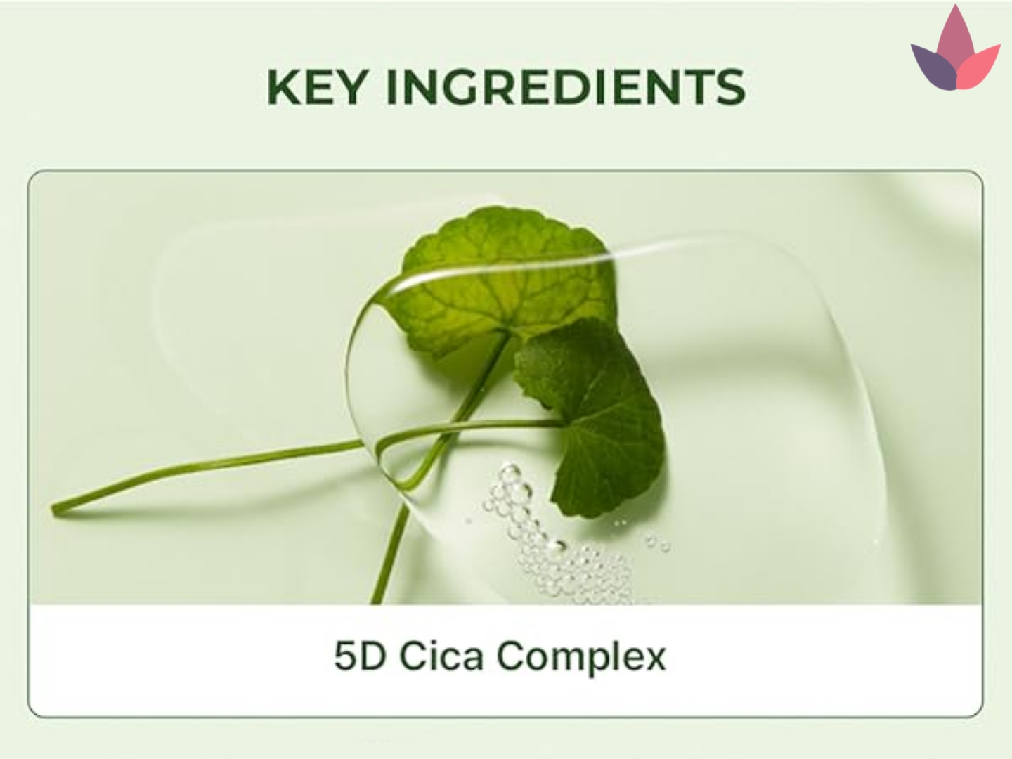 ✔️ حاوی 5 نوع عصاره سنتلا آسیاتیکا (CICA) برای کاهش التهاب و قرمزی